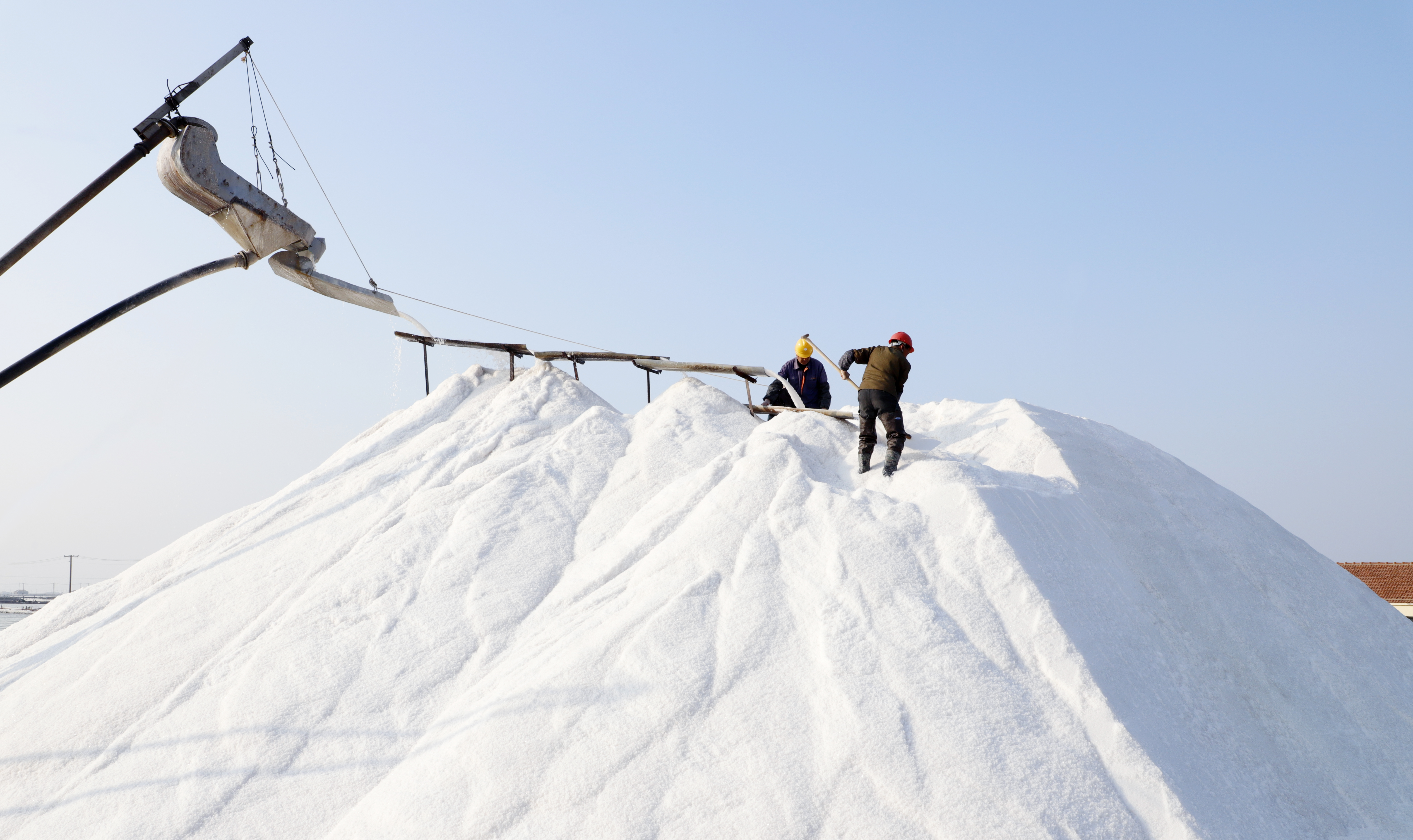 “春种一粒粟,秋收万颗子”。又是一年春季,在大地上撒下种子,等待秋季收获粮食。3月4日,日晒制盐公司万亩盐田机器轰鸣,一池池“雪盐”银光闪闪,一条条“银瀑”临空而下,这里不是平日里土地上的春耕春种,而是利用潮汐收集海水,风能、太阳能蒸发制卤,最后结晶成盐。