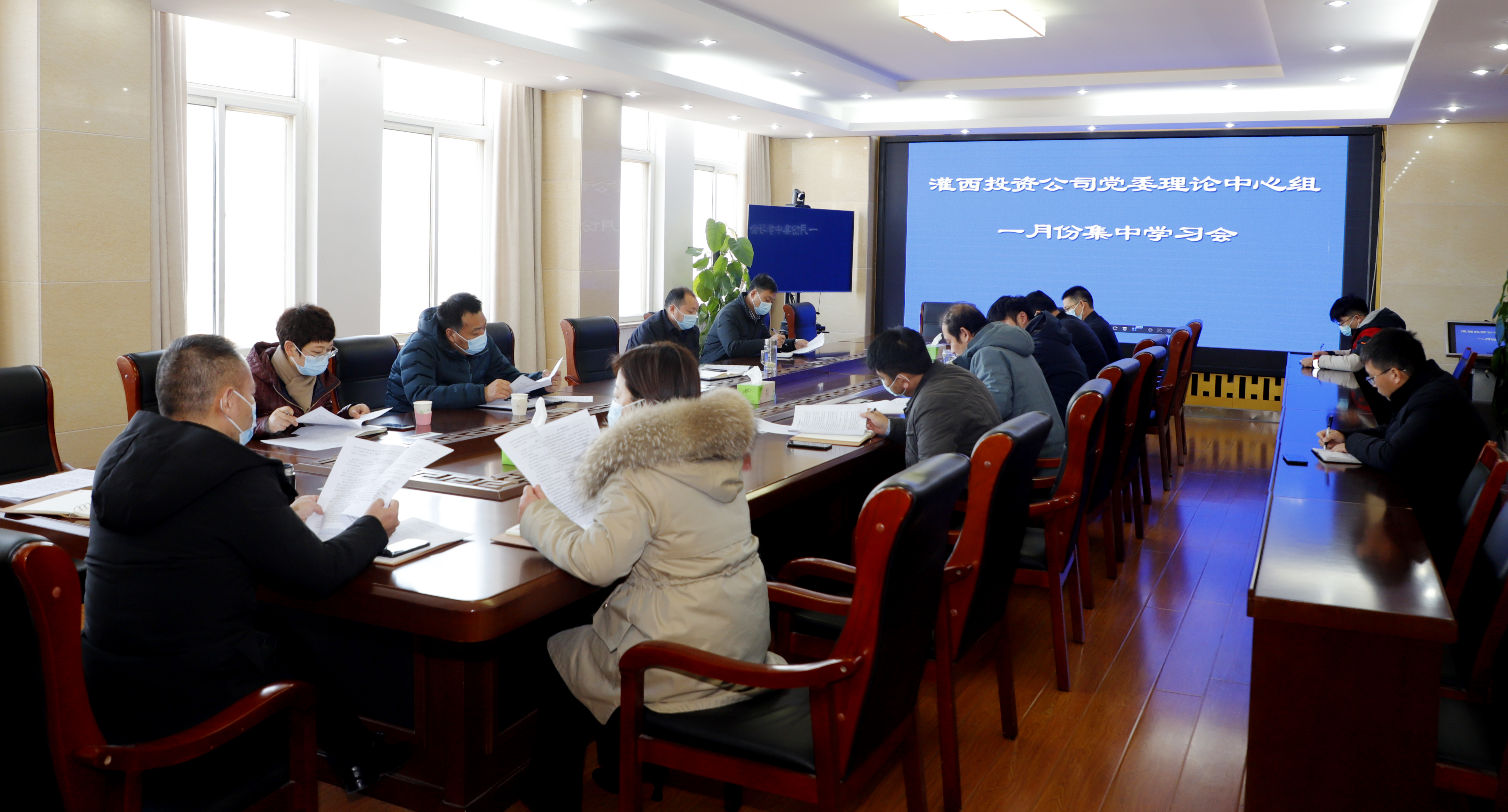 1月29日上午,灌西投资公司党委理论中心组召开2021年一月份集中学习会。传达学习连云港市2021年政府工作报告及新时代连云港精神。投资公司党委书记、董事长、总经理李国文主持会议,并结合公司实际,就进一步做好传达学习和贯彻落实提出要求。