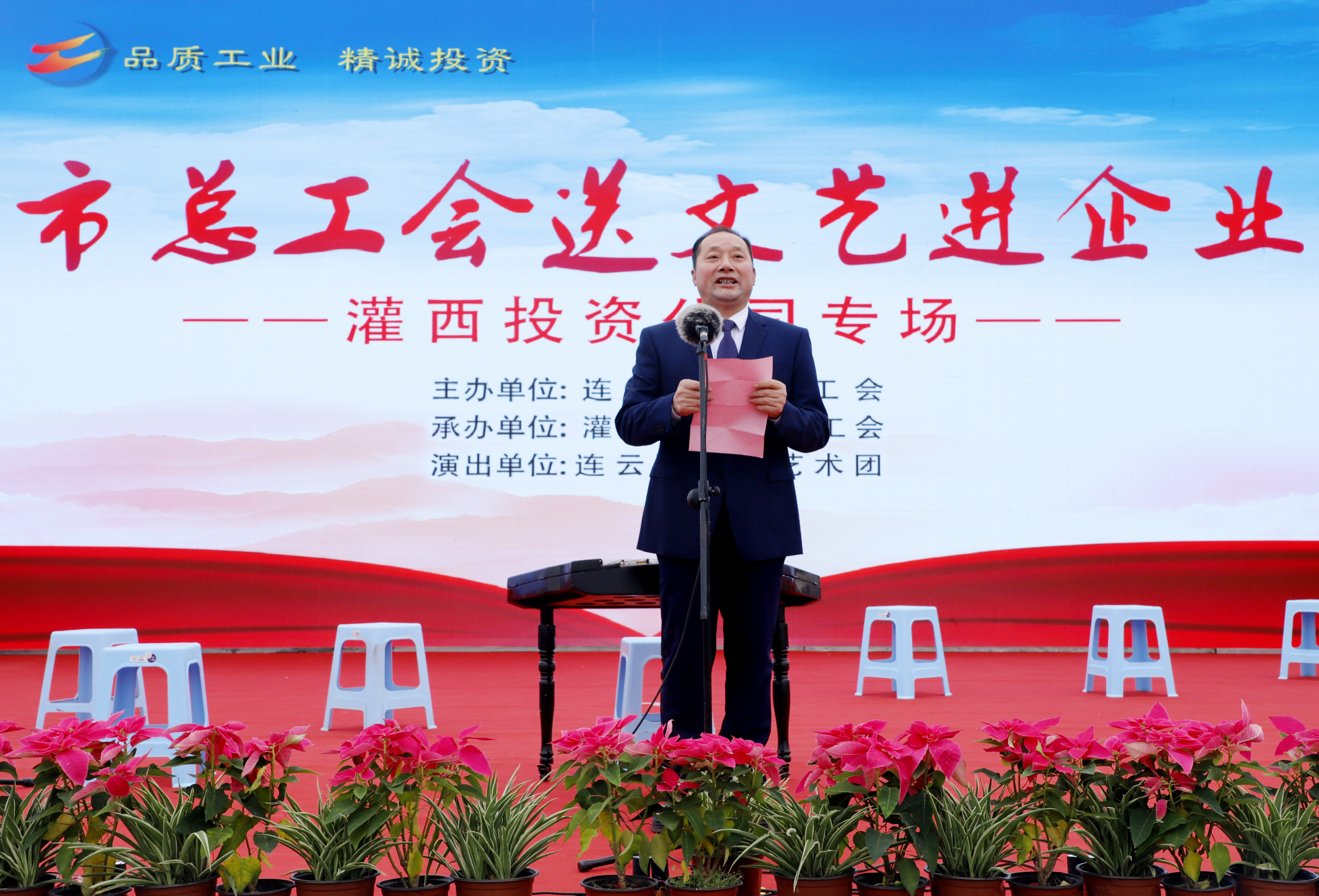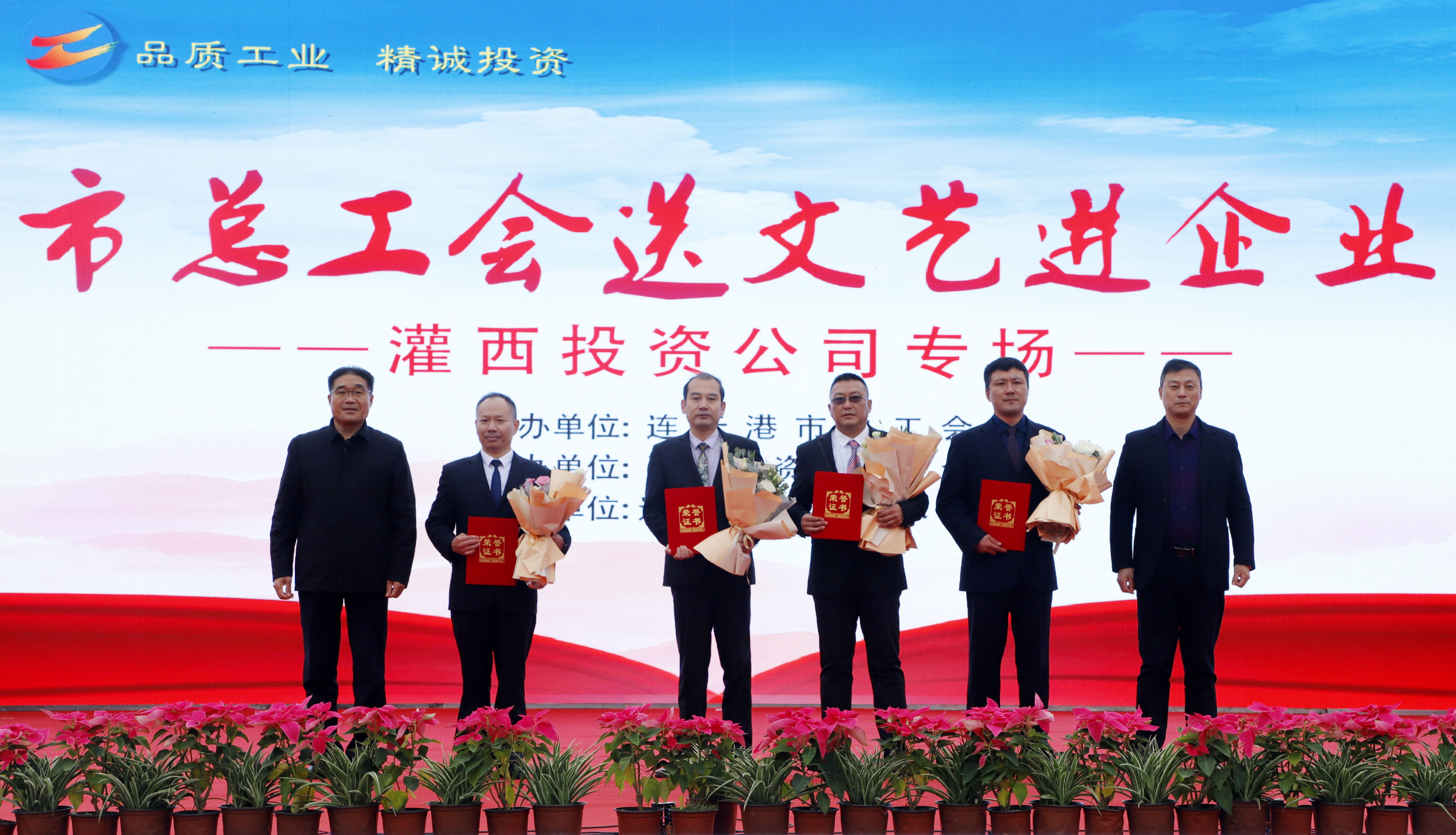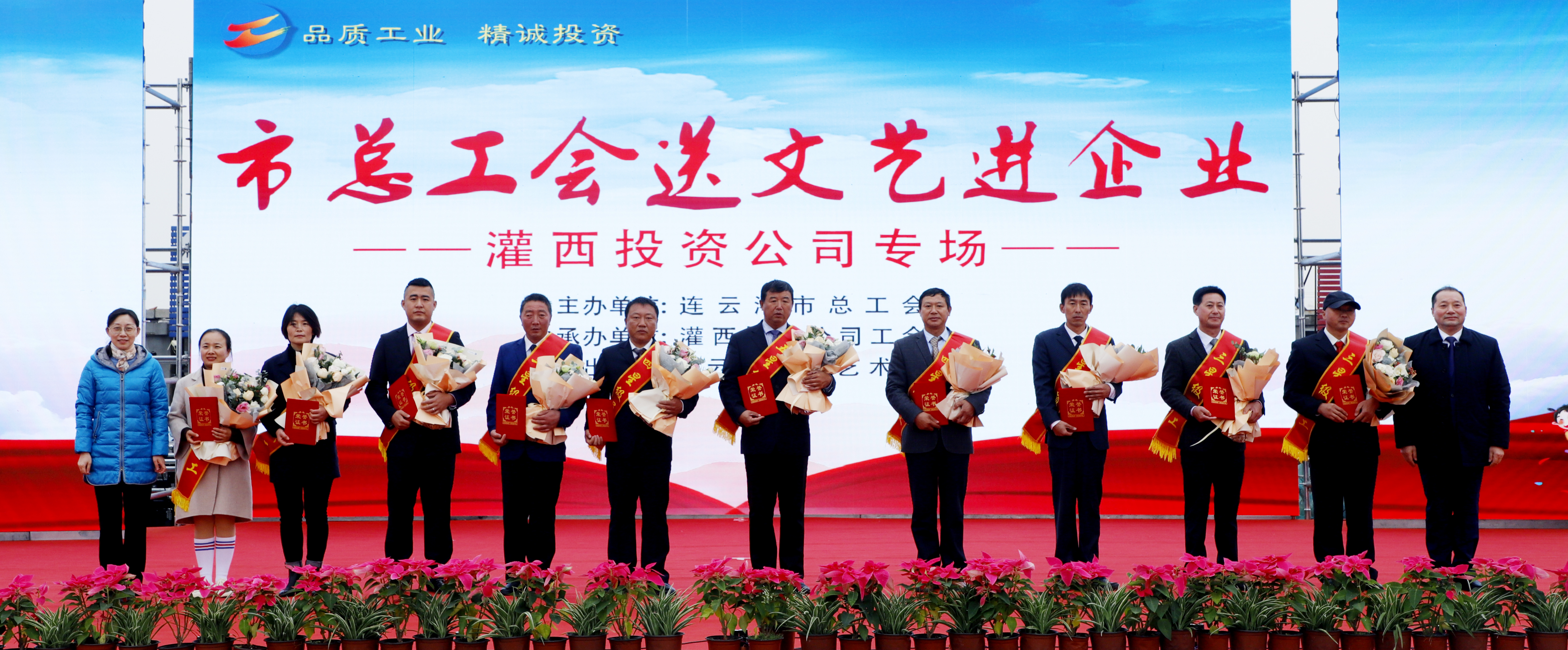 11月25日,由连云港市总工会主办、连云港市工投华体会(中国)灌西投资公司协办、连云港市职工艺术团参演的“市总工会送文艺进企业”演出活动在灌西中二圩职工广场举行。市总工会党组书记、副主席丁维杰,华体会(中国)纪委书记汪群、工会主席刘承志,投资公司党委书记、董事长、总经理李国文及公司领导班子成员与灌西700多名干部职工群众共同享受了此次“文化”盛宴。