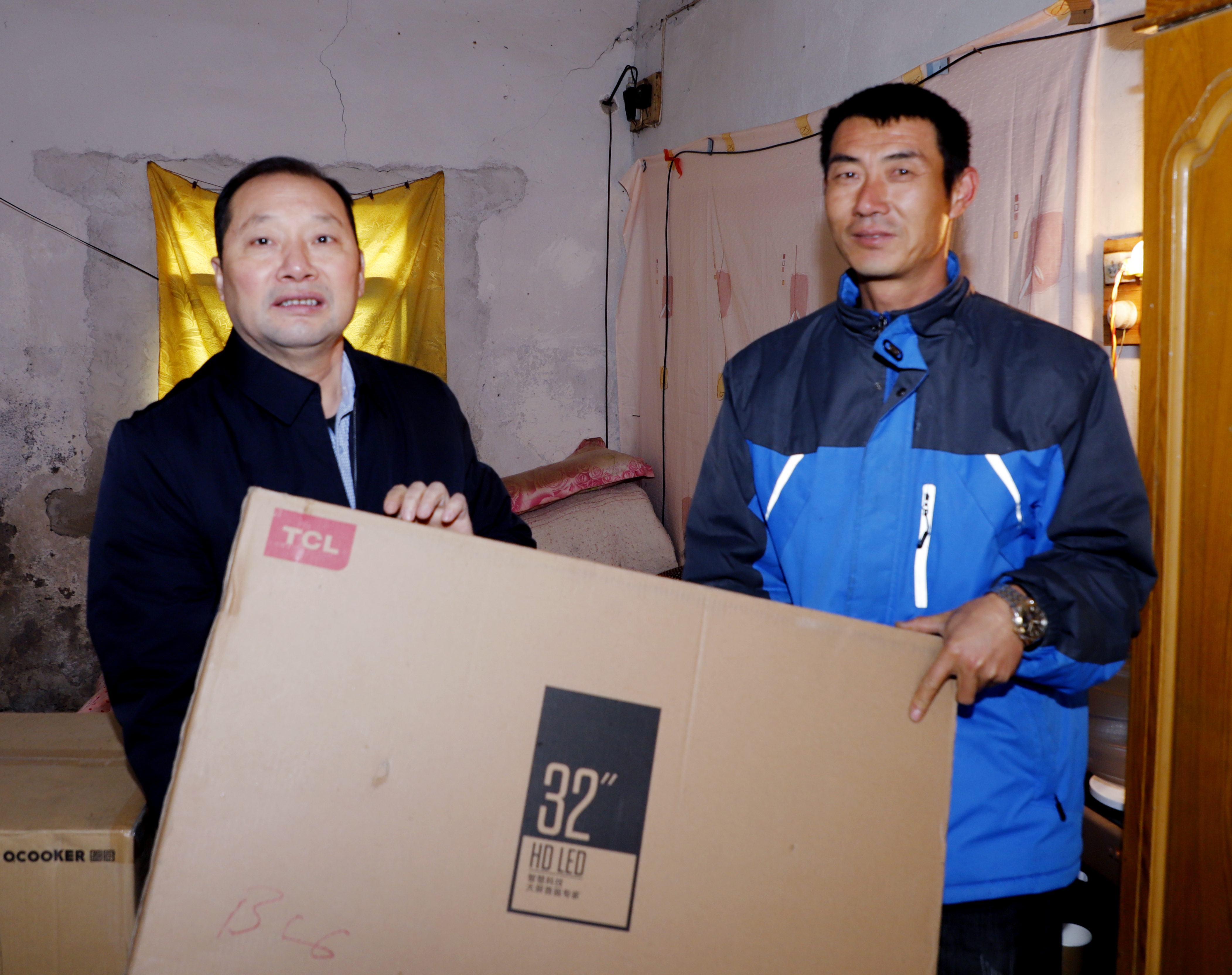 11月24日,灌西投资公司党委书记、董事长、总经理李国文,党委副书记、工会主席王宏为灌西中二圩社区贫困家庭送去暖冬爱心“家电包”。