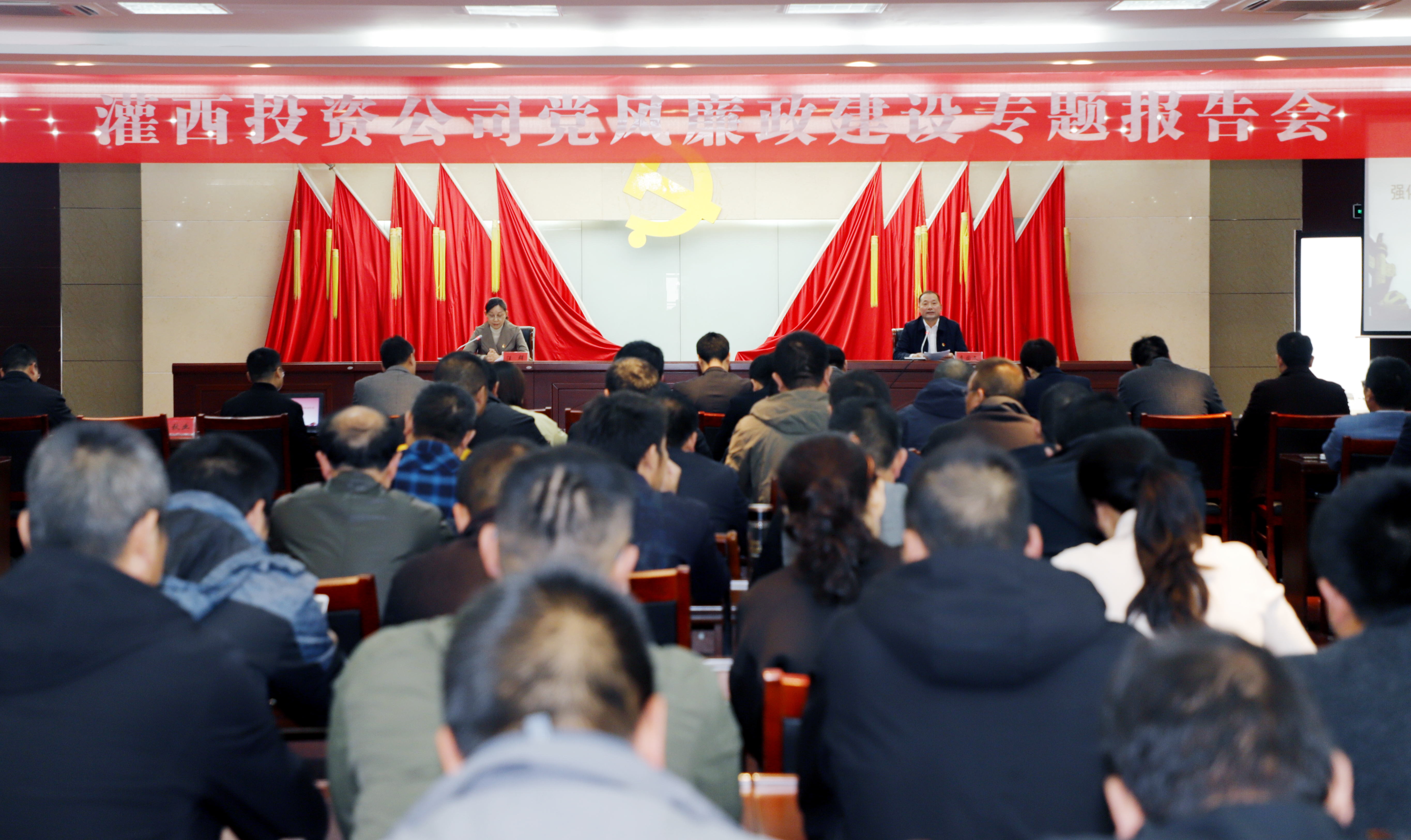 11月17日下午,灌西投资公司邀请华体会(中国)纪委书记汪群在机关五楼会议室为党员干部作党风廉政建设专题报告。投资公司党委书记、董事长、总经理李国文主持会议,公司领导班子成员、各单位党政负责人、共建单位神特、奥神纪检人员、机关全体管理人员100余人参加会议。