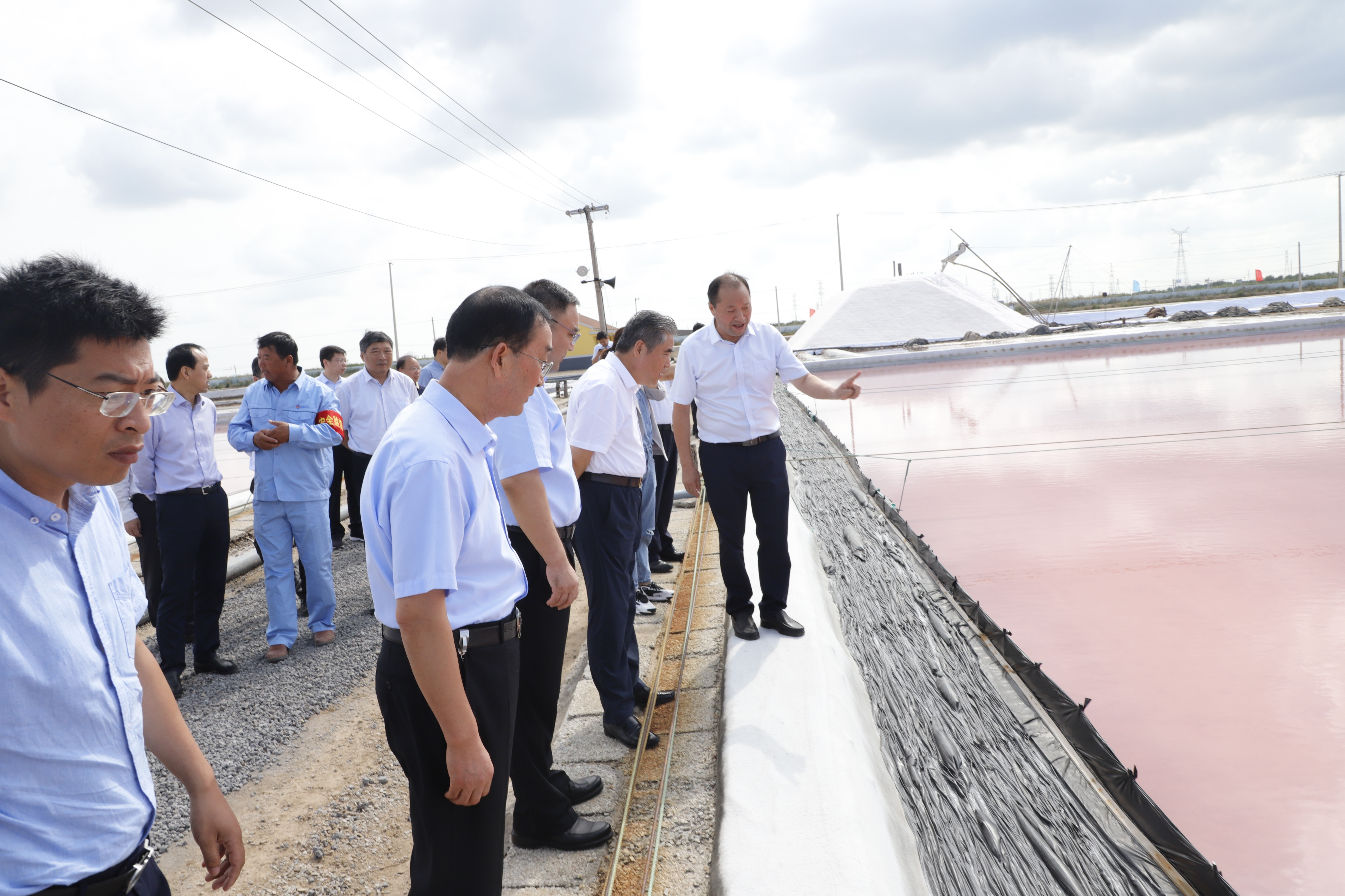 秋高气爽,粉色盐池美如画。在日晒制盐扒盐现场,项雪龙仔细听取了制盐工艺流程和盐业生产经营等情况。实地察看日晒在池盐集中结晶区、机械化扒盐生产现场,充分肯定了盐业生产通过创新生产工艺、加强质量管控取得的发展成效。并指出,盐在生产生活中应用十分广泛,随着人民生活水平的不断提高,市民对高品质盐的需求越来越旺盛,制盐产业发展前景广阔。要坚持以市场为导向,加大技术研发,加快产品升级,不断扩大中高端产品供给,推动实现质量更高、效益更好、竞争力更强的发展。
