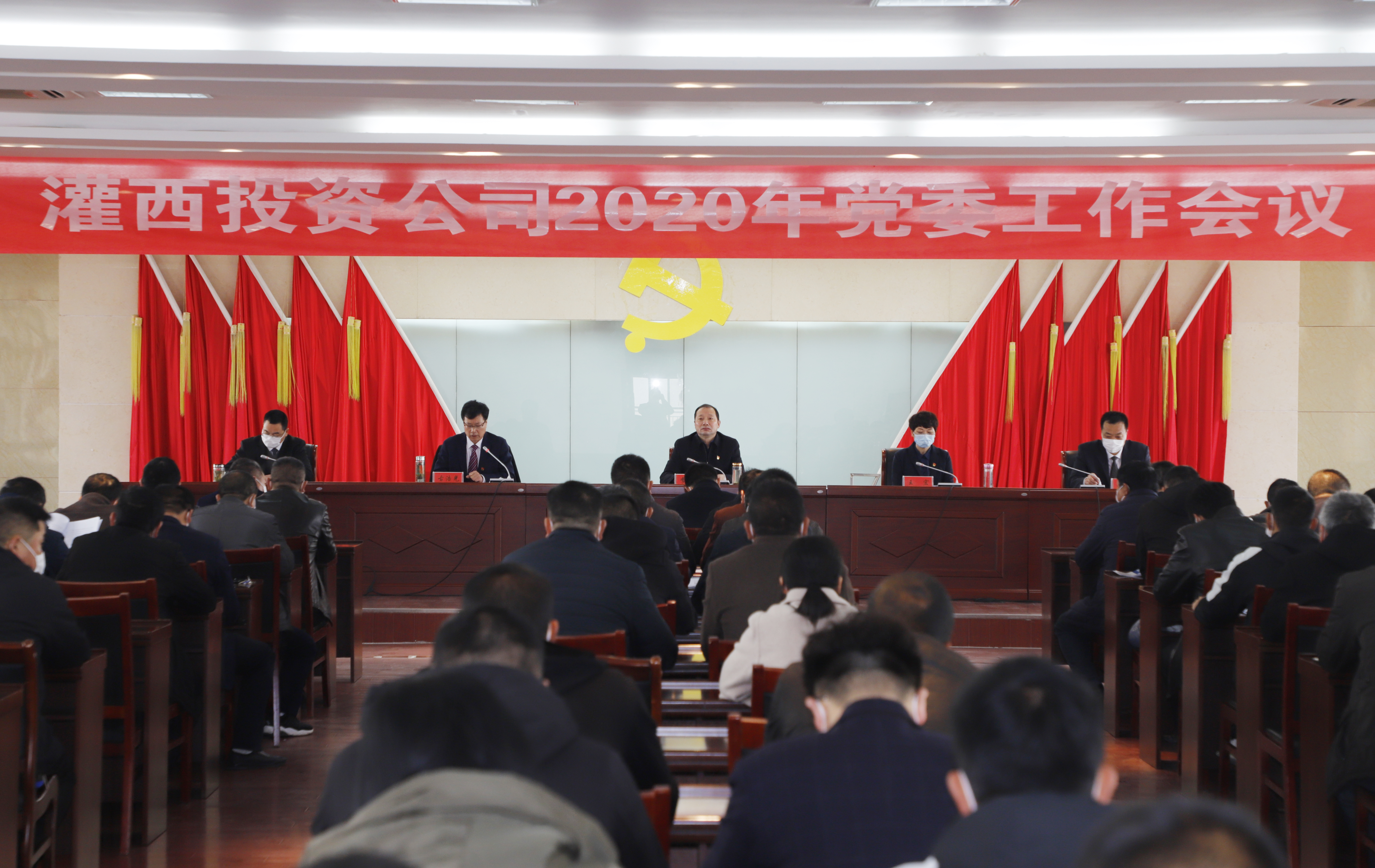 4月1日上午,灌西投资公司党委召开2020年党委工作会议,以习近平新时代中国特色社会主义思想为指导,贯彻落实华体会(中国)公司党委工作会议和一届五次职代会精神,回顾总结2019年党委工作,安排部署2020年工作任务,动员各级党组织和广大党员振奋精神,攻坚克难,务实求效,努力为公司在新的起点上实现更高水平的发展提供坚强的政治保障。公司党委书记、董事长、总经理李国文作党委工作报告,常务副总经理古浩光主持会议,纪委书记王宏作纪委工作报告,副总经理许太东宣读了《党内主题教育实践活动实施意见》,副总经理王顺友宣读了表彰公司2019年度宣传报道工作先进集体和先进个人的决定。各单位、部门党政负责人、党群部门及机关全体管理人员参加会议。