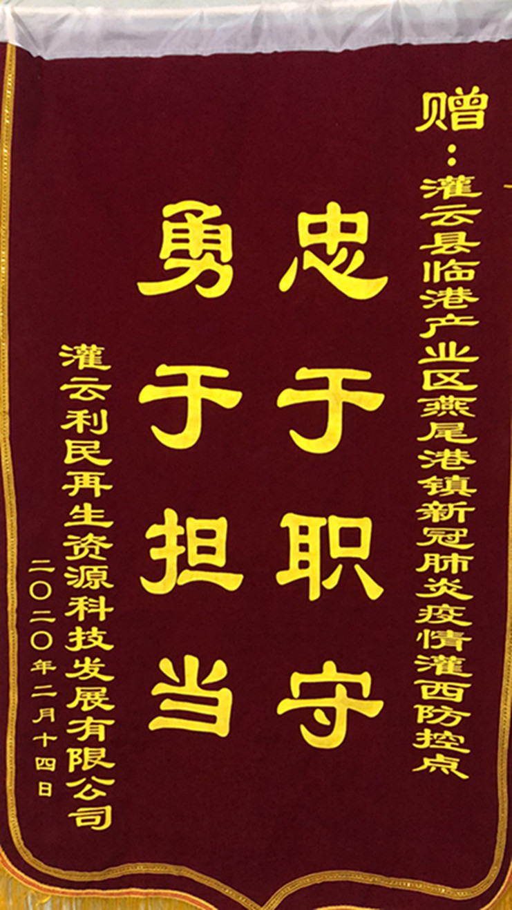 “非常感谢你们对华体会在线三家公司的守护,为华体会在线广大职工筑牢了一道防疫情的铜墙铁壁,你们辛苦了!”近日,连云港临海新材、灌云利民再生资源、江苏沙英喜三家公司分别为新冠肺炎疫情灌西防控点值守人员送来三面锦旗,感谢灌西投资公司值守人员在疫情期间为疫情防控工作作出的贡献。