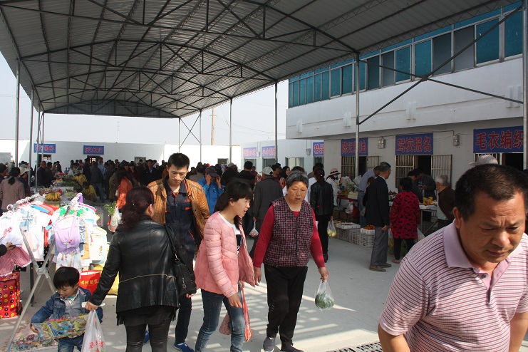 5月12日随着一阵鞭炮声响起,灌西扶贫帮困基地经过一个多月的施工建设,如今正式投入使用。基地内,卖水果蔬菜的、粮油衣服小贩商户,购物买菜的职工群众来来往往,人头攒动,一派热闹景象