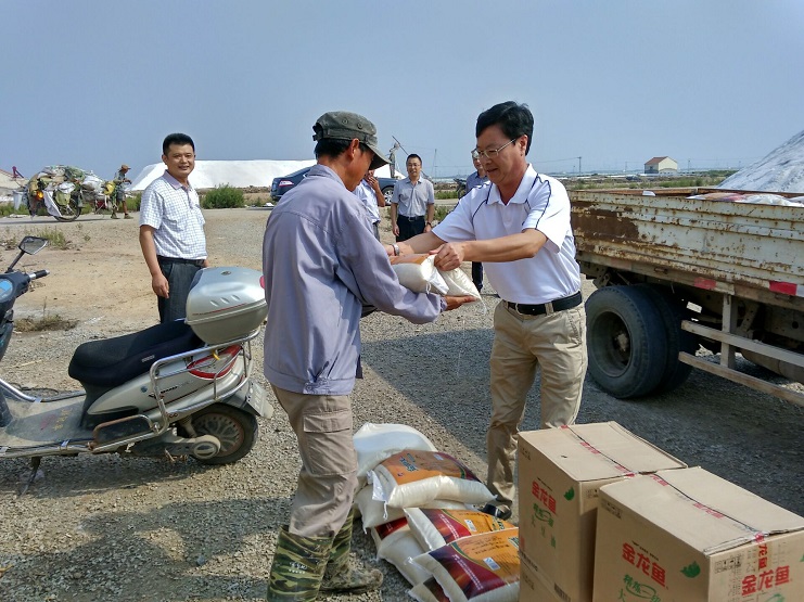 9月12日,灌西投资公司党委领导深入日晒制盐公司各班组慰问一线员工,送来大米和食用油,为工作在一线的全体员工鼓劲加油,并致以节日的问候,增强企业的凝聚力。