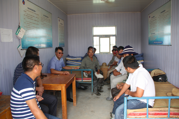 王德志董事长一行到新河制盐分公司三班进行了走访慰问,详细了解了当前的盐业生产状况。在得知有关生产班组出现卤水供应不足等情况后,他要求各生产班组要根据实际情况,合理调整灌池面积,在保证扒盐工作正常开展的同时,还要紧抓制卤工作,确保盐业生产有序进行。走访慰问过程中,王董事长还与职工们亲切交流,耐心的向他们介绍了当前公司所面临的市场形势,希望他们能够团结一心,与公司一起共度难关。
