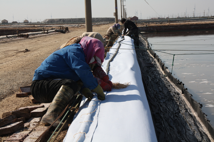 3月14日下午,风和日丽,在日晒制盐公司广阔的结晶生产区,洁白的盐廪、洁白的格堰在阳光照耀下,显得格处醒目,只见工人们有的在扒盐,有的在破碴,还有的在更换塑布......全公司上下一派大干场景。华体会在线在新河制盐分公司的八班一期生产区,只见工人们两人一组,蹲在池堰边,用土工布固化格堰,进行滩场亮化,这一片区域是公司正在建设的食用原料海盐生产基地。在一期与二期间的生产路上,华体会在线遇到了该公司经理安树林,他正从南边班组一路检查走来,他告诉华体会在线,自公司职代会召开过后,新河制盐分公司通过支委会、班组会迅速传达公司职代会精神,贯彻落实班组承包方案,对照全年产盐55万吨的目标,做好任务分解。当前盐业生产积极做好破碴、活碴、更新塑布等工作,全力推进扒盐工作,今年以来已经扒盐3.6万吨。