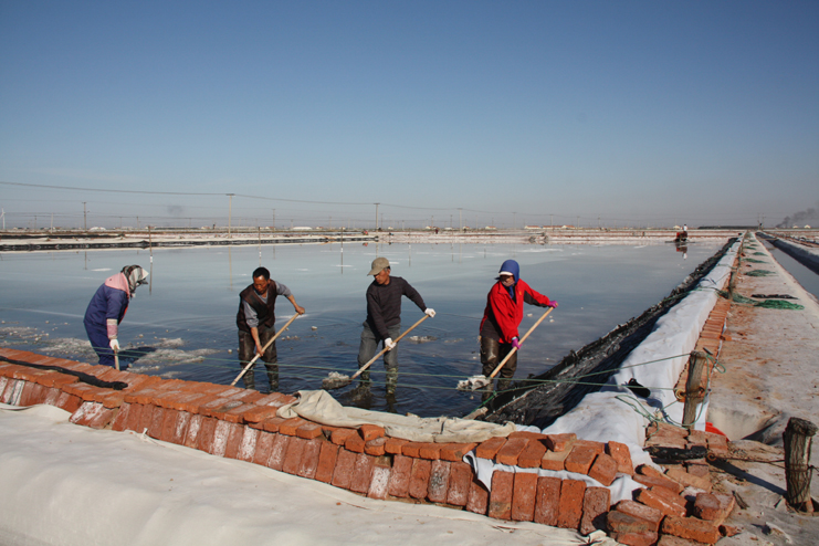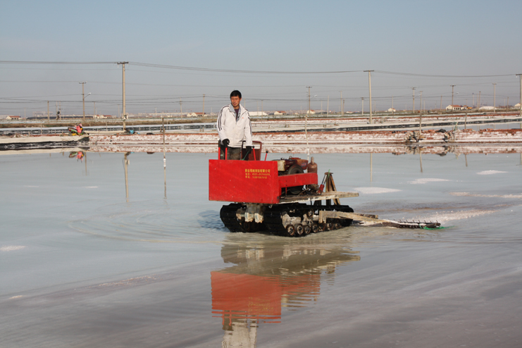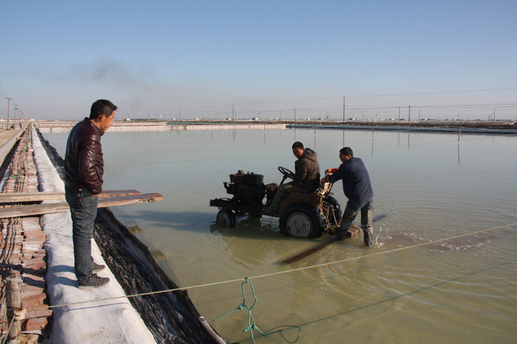 在埒南制盐分公司的八班,华体会在线看到一名工人正熟练操作着一台整平机械在结晶池内来回移动,对扒过盐的格块进行整平,还有几名工人用铁锨整平机械到不了的边角地带。由于在廪基上没有看到盐,而结晶池已扒过盐,华体会在线觉得奇怪,经了解,原来今年新扒盐已经有部分销售了出去。埒南制盐分公司经理杨守兵正在九班的滩上查看机械破碴情况,他说道:“华体会在线以委员包片形式深入班组贯彻公司职代会精神,加强形势任务宣传统一思想,让员工认识到当前原盐市场回暖行情,鼓舞士气,振奋精神,全力投入到当前春季生产中来。”