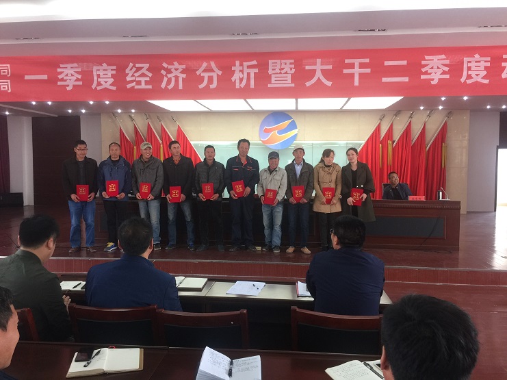 会上,总经理李国文对两大公司一季度工作进行了全面总结,指出了一季度工作中存在的主要问题,并对二季度工作进行了全面的布置安排。党委副书记、纪委书记、工会主席王保平通报一季度重点工作督查情况,宣读了冬准劳动竞赛表彰决定和大干二季度劳动竞赛意见。副总经理张学峰、徐进军分别对两大公司一季度经济运营情况进行了分析。新河制盐分公司、养殖服务公司、资产经营部负责人分别在会上作表态发言。会议还对新河制盐分公司零班等七个先进班组,王永来等三十二名先进个人进行了表彰。