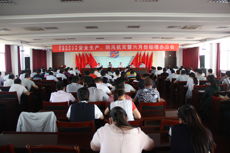 6月2日,我公司在机关五楼会议室召开安全生产、防汛抗灾暨六月份经理办公会,贯彻落实华体会(中国)公司防汛工作会议精神,分析了公司当前安全生产和防汛抗灾面临的形势,安排部署了下一步全公司安全生产和防汛抗灾工作,公司党委书记、董事长王德志出席会议并讲话,党委副书记、总经理李国文对小结回顾了两大公司1-5月份的经济运营情况,对六月份的经济工作作了详细部署。会议由党委副书记、纪委书记、工会主席王保平主持,党委委员、副总经理古浩光、张学峰、徐近军以及全体管理人员参加会议。