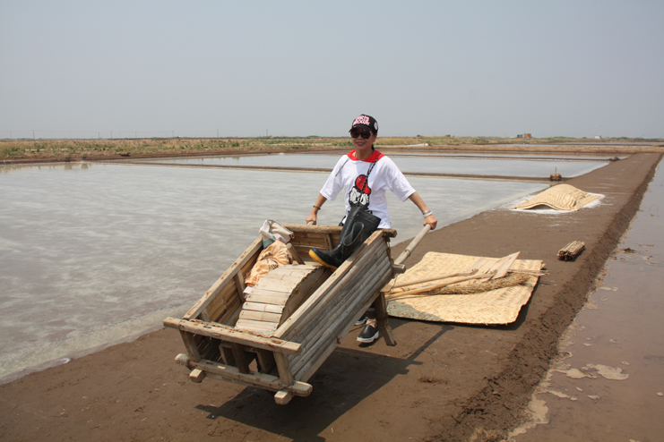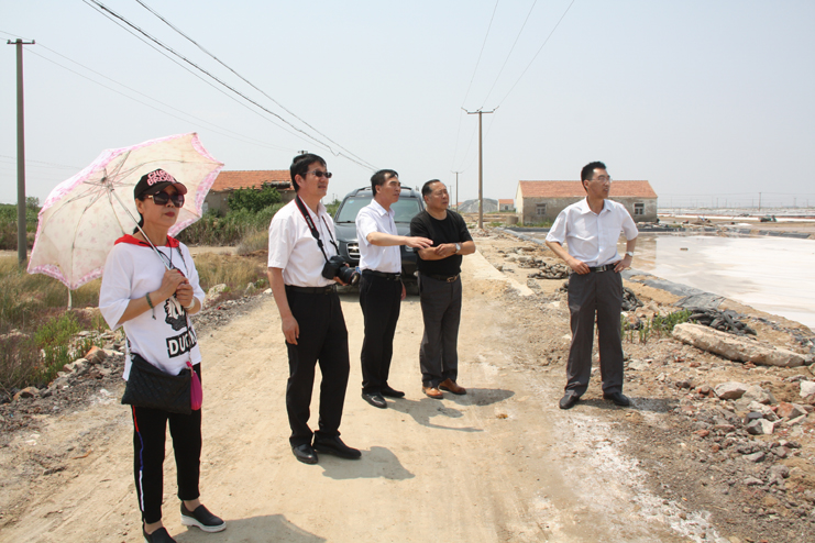 一行人先后到原民国时期公济制盐公司的办公署遗址、早期产盐平面滩和日晒制盐公司的扒盐现场参观采风。具有百年历史的原公济制盐公司办公署是灌西盐场地区现存最古老的建筑物,也是整个淮盐地区仅有的遗迹,随着历史的变迁,房屋虽几经改建,破损严重,但主体结构仍然保留了下来,是重要的淮盐文化物证。位于钙液复晒区的早期产盐平面滩,是前不久为央视摄制组拍摄淮盐发展历史而改造的制盐平面滩,复制了过去的制盐工艺及生产过程,在平面滩上,大家拿起收盐刮板,挑起盐筐,手推小盐车,一一体验一下过去盐工们的劳动方式。在新河制盐分公司十班的扒盐现场,机声隆隆,洁白盐廪不断壮大,这是日晒制盐公司上半年最后一台正在扒盐的机组,其余的七台扒盐机组已经先后完成的扒盐任务,正在进行最后三块格的扒盐工作。大家一边参观,一边拍照,通过古今不同时期产盐方式对比,对过去盐工们的艰辛劳动和现代制盐技术的革新,生产力的提高都有了直接的感受,个个感触颇深。(季兴胜)