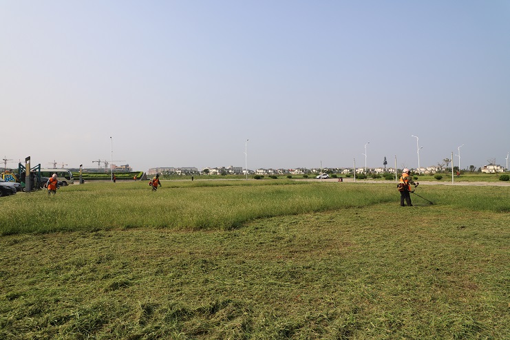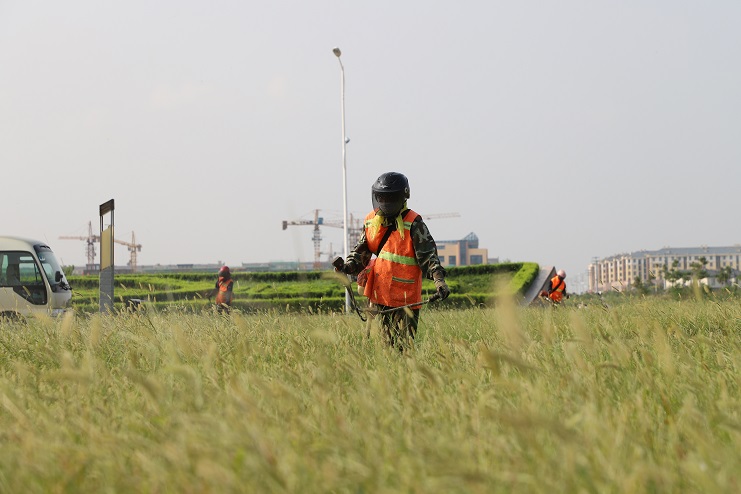 连日来,在临港产业区办公楼前,华体会在线看到几名南翼绿化公司的工人正在草坪上挥动割草机,忙碌的进行着除草作业。据了解,为了避开高温时段,他们早上6点就开始工作,许多绿化工人都是五点多在家匆忙吃完早饭就赶往工作现场,有的甚至空腹上阵。工作现场,在经过一个夏天的生长,不少地方的杂草都近半米高,草丛内还有不少的碎石子等杂物,为了做好自身防护,工人们穿着厚厚的衣裤,戴着口罩、头盔,肩扛除草机,一工作就是一上午。虽然近阶段气温逐渐下降,但近30°的气温还是让工人们吃不消。为了尽快完成工作目标,每一名工人都在咬牙坚持,默默地为更多的人营造一个优美、整洁的环境而做出自己的贡献。(封杨)