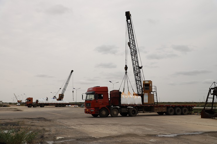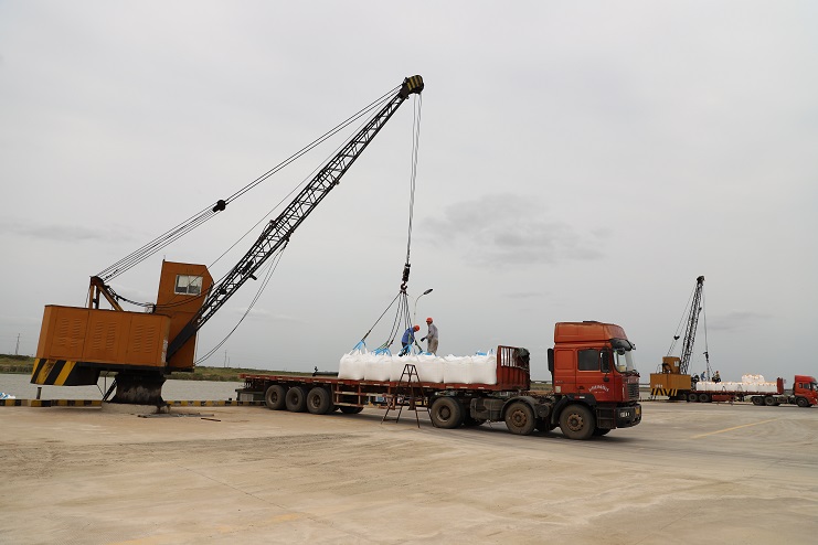 这两天,家家户户都在享受着双节来临的喜悦,然而来自宵洋物流公司五灌河码头的全体员工却没有闲着。十月三日,天气稍有好转,码头上就瞬间忙碌起来,装运吨袋的车辆来来回回、一辆接着一辆。工人们也按照事先分配好的工作任务有条不紊的进行着挂钩、转运、解勾等工作流程,让每一包吨袋都准确无误的码放在船舱内。