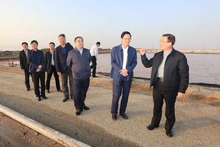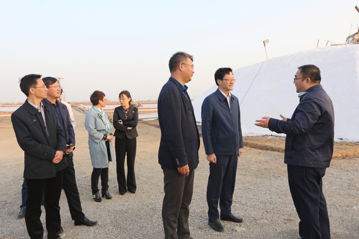 在日晒制盐埒南分公司的五班,刘海涛书记一行现场观看了扒盐生产场面,参观了金桥制盐公司生产的各类盐产品,同时对班组盐工们的生活工作情况进行调研,听取了有关盐业生产、管理、销售和运营管理机制等方面的情况介绍。对日晒制盐公司不断推进科技创新、管理创新,着力打造全国一流现代化制盐企业所取得的成绩给与了充分肯定。