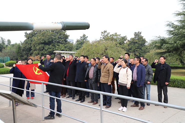 在纪念馆前,大家面对鲜红的党旗,重温入党誓词,共同表达对革命烈士最崇高的敬意。