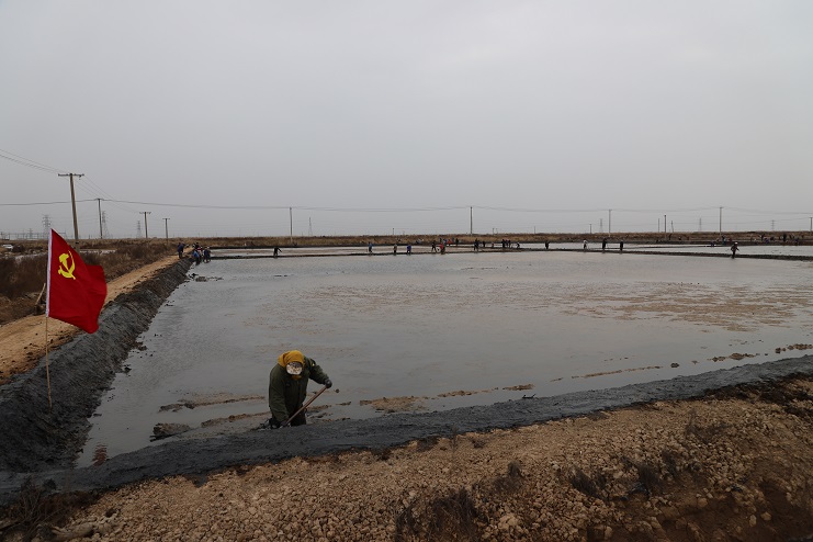 11月29日上午,虽然天气寒冷,但是在海盐基地新改造的制卤滩上,却到处是一派火热的劳动景象,参加“大会战”的工人多达100余人,只见他们有的泼水,有的铲泥,有的捞沟,有的做埝,大家分工协作。据了解,为了提高海水制卤能力,确保海盐产量,今年公司专门对海盐基地部分废弃滩地进行了改造,以进一步增加制卤面积。近期,随着改造工程接近尾声,公司又组织精干力量对新改造滩地继续进行修整,以确保新建的制卤滩地能够尽快投入使用,为明年海盐生产工作的正常有序开展奠定扎实的基础。