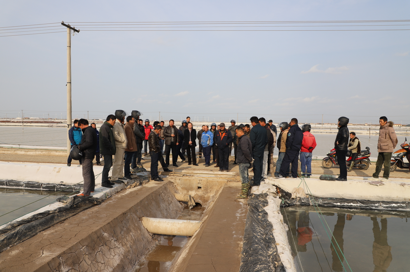 会前,与会人员一起现场参观了新河制盐分公司零班做格堰,三班清理硫酸钙和土塘清淤等冬准工作典型,随后在生产服务公司会议室召开冬准动员大会,会议对公司的冬准工作进行了全面部署,公司党委书记、董事长王德志作形势任务讲话,总经理李国文作动员讲话,副总经理古浩光对冬准工作提出要求,工会主席王宏宣读了关于开展“大干冬准劳动竞赛”活动方案,新河、埒南制盐分公司三名班组长就如何干好冬准工作分别作表态发言。