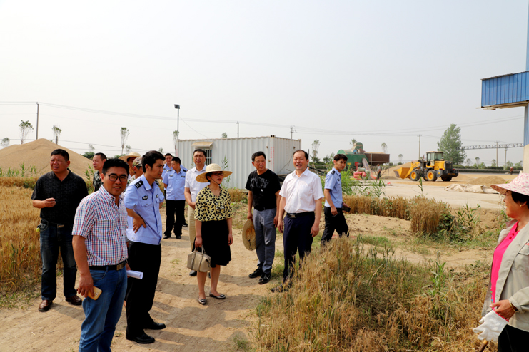 李国文一行深入田间地头和秸秆禁烧值守点实地查看小麦抢收、秸秆禁烧工作落实以及值守在岗人员等情况。督查中发现,部分禁烧值守点仍然存在着看守人员不到位、灭火设备不齐全、在路边随意堆放秸秆等情况。