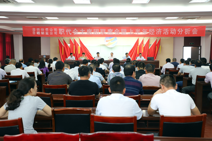 7月13日上午,灌西投资公司十五届四次、日晒制盐公司二届四次职代会主席团联席会议暨经济活动分析会,在联合服务中心五楼会议室隆重召开,公司领导班子全体成员、各单位领导班子成员、机关全体管理人员以及受表彰人员参加会议。会议由公司纪委书记、工会主席王宏主持。