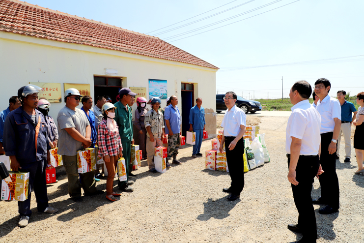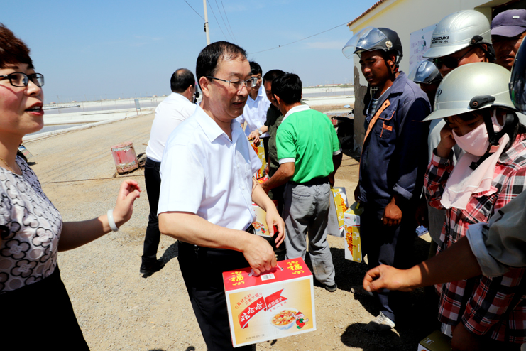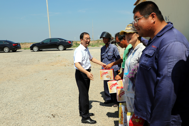 入伏以来,持续高温,为确保一线生产单位工作顺利开展,保证员工身体健康。7月18日上午,华体会(中国)公司总经理胡建明、副总经理张其海一行深入日晒制盐公司走访慰问一线职工,把绿豆、饮料等慰问品送到他们手中,在炎炎夏季,为一线职工送去华体会(中国)公司领导的深切关怀与阵阵清凉。