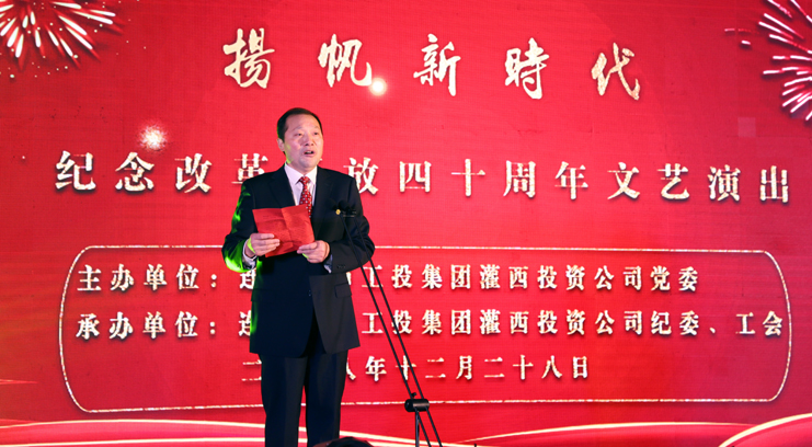 伟大变革,书写壮丽史诗;永志不忘,奋进复兴征程。12月28日,灌西投资公司以“扬帆新时代”为主题的庆祝改革开放40周年文艺汇演在灌云县临港产业管委会报告大厅上演。工投华体会(中国)公司领导戴鸿鸣、汪群、刘承志等领导与职工群众代表700余人共同欣赏了这台振奋人心的视听盛宴。投资公司党委书记、董事长、总经理李国文作了演出致辞。