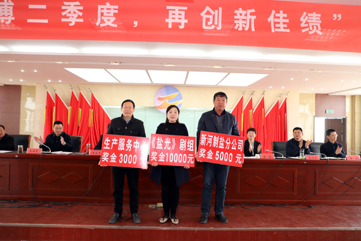 会上,宵洋公司、新河制盐分公司、市场销售部、资源管理公司作了表态发言,还对“冬准”劳动竞赛、“创新创优”先进集体和先进个人进行了表彰。(张明建)