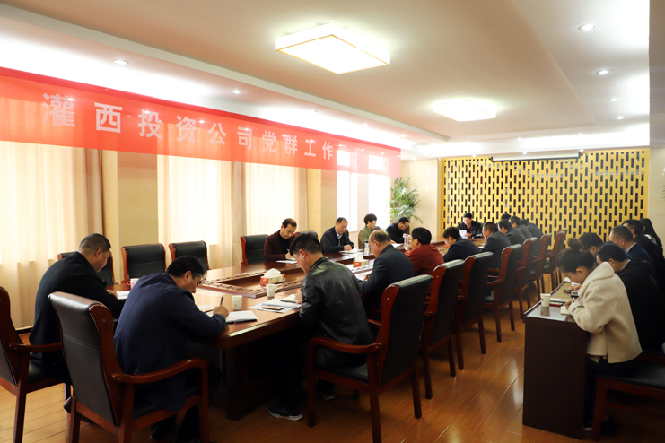 4月24日上午,灌西公司在机关三楼会议室召开党群工作季度联会,会议全面总结一季度党群工作,部署二季度党群重点工作。公司党委书记、董事长、总经理李国文,党委副书记、纪委书记、工会主席王宏,机关党群部门全体人员,各基层支部、分会负责人参加会议。