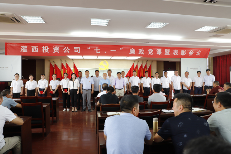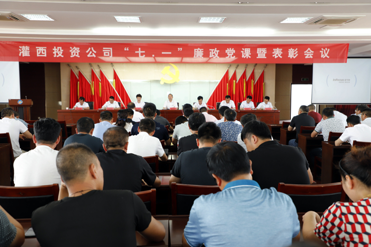 6月27日上午,灌西投资公司召开纪念建党98周年暨“七一”表彰大会,通过表彰先进、重温入党誓词、党委书记上党课等形式,共同回顾党的光辉历程,缅怀党的丰功伟绩,激发广大党员干部担当进取、干事创业的激情与热情,以更加奋发进取的精神状态,为公司发展增添动力。公司领导班子成员、各单位副职级以上人员、受表彰的先进、新发展的预备党员以及机关全体党员参加会议。