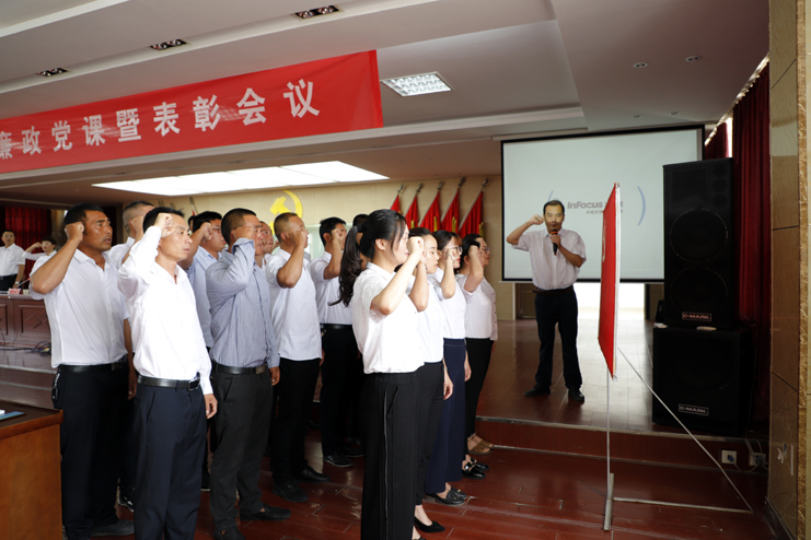 党委书记、董事长、总经理李国文以《全面从严治党推进企业高质发展》为题,深入讲解了当前反腐斗争形势分析、新时期如何抓好国企党风廉政建设、抓好意识形态工作推进全面从严治党、党员干部如何转作风敢担当保本色。李国文要求:全面从严治党永远在路上,广大党员干部要从我做起,从现在做起,拿出行动,身体力行,求真务实、真抓实干,不断开创公司党风廉政建设新局面,为决战今年的“一高二进三争创”目标任务提供坚强的纪律保障。