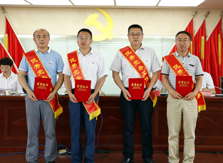 会上,今年新入党的人员进行了宣誓,各支部书记为新党员佩戴党徽和发放了党章。(张明建)