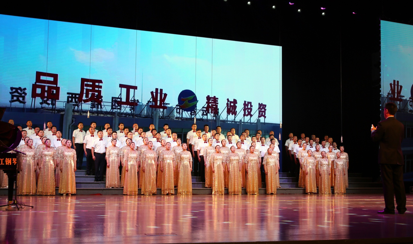 “风在吼,马在叫,黄河在咆哮……”嘹亮的歌声在市艺术中心舞台上响起, 6月28日下午,华体会(中国)公司2019年“感党恩、颂祖国、赞工投”大合唱比赛在此隆重举行,灌西公司百人合唱团获得二等奖,华体会(中国)党委书记、董事长杨龙为灌西合唱团颁发奖杯。