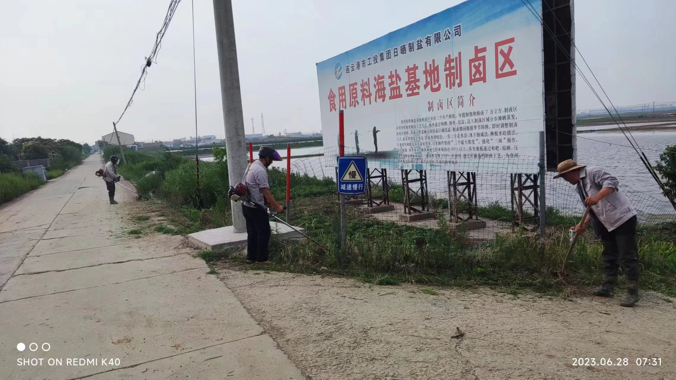 为迎接中国共产党建党102周年,七一来临之前,海水盐生产基地党支部,按照灌西投资公司党委迎“七一”系列活动要求,结合支部自身实际情况,组织党员、班组骨干,先后开展了党的二十大精神和党纪条例测试、党员重温入党誓词、义务劳动等活动。