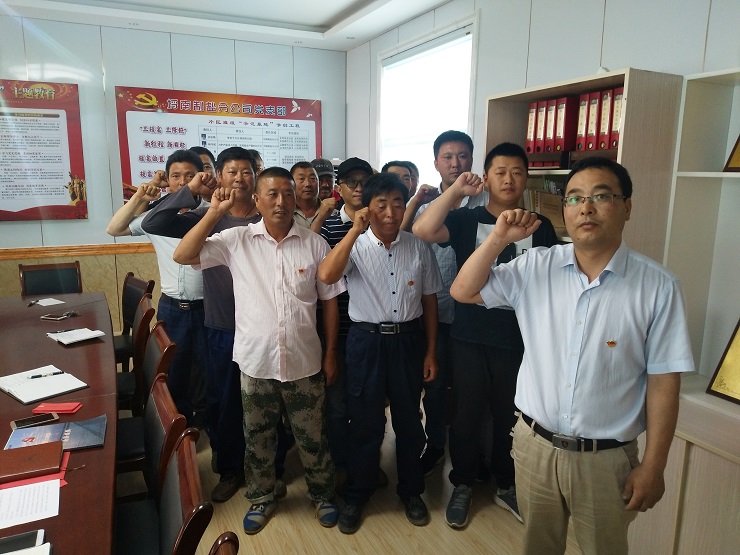 会议由庄忠明书记主持,首先对新加入的古青、曹军华两名同志的接收投票,在全体正式党员进行无记名投票表决后,两名同志全票通过了投票表决;会议上庄忠明书记代表埒南党支部对全体党员进行了组织架构通报,并带领大家重温了入党誓词;杨守斌经理以“不忘初心、牢记使命”为主题为大家上了一堂党课--争做新时代合格党员;作为庆祝“七一”的一项活动,大家带上会前带来的铁锨等工具,到工区旁的马路上对脏乱的道路进行义务劳动。