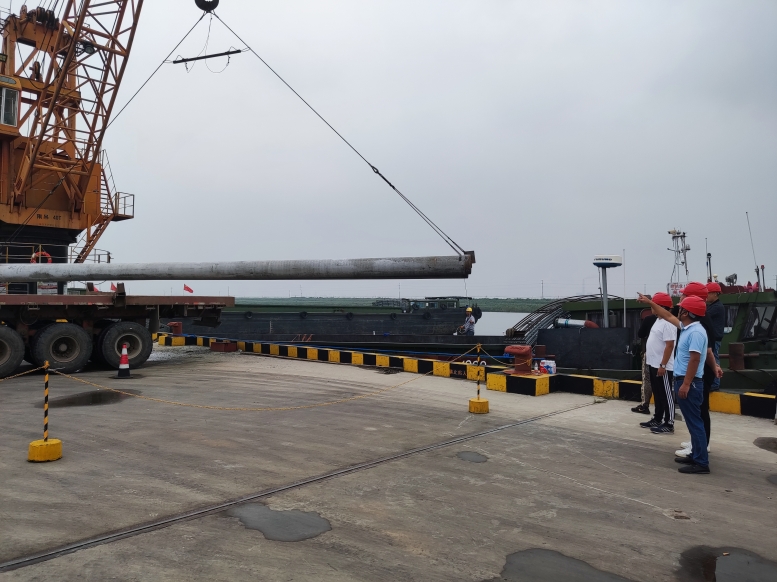 管桩的装卸和别的货物相比,安全风险更大,所以在装卸管桩时,宵洋管理人员要深入现场,紧盯严管,对管桩的重要环节,一边讲解注意事项,一边手势指挥,塔吊师傅小心翼翼,娴熟地拔弄着操作手把,通过塔吊搬运,五吨的管桩在半空中调试到最佳位置,最后平稳着落,从船舱吊起的管桩,运送到货车上,舱内的三名工人,齐心协力,配合得相当默契,挂在吊机上的管桩,看似简单的一钩一挂,不仅要调整管桩摆放角度,还要检查钢绳是否牢固,为了安全起见,在船舱和管桩之间,又架起了一层防护网,防止挂钩工摔倒跌落,采取一系列防范措施,确保万无一失。经过一天的忙碌,望着远去车辆,每当圆满完成当天卸管桩任务后,工人们憨厚老实脸上,露出了满意的微笑,这就是华体会在线宵洋工人搬卸管桩情景的真实写照!(宵洋物流公司胡秀同)
