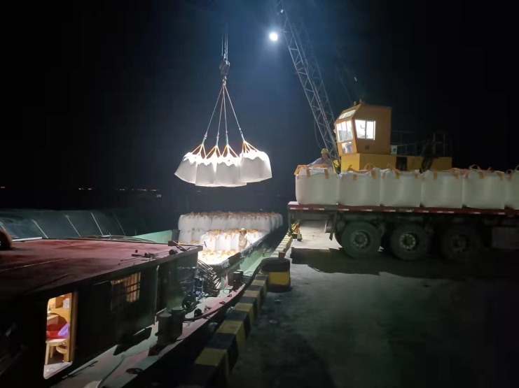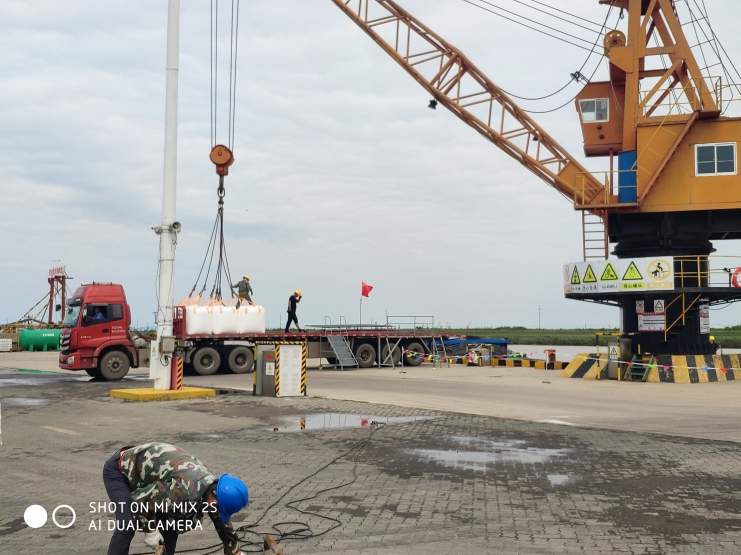 在承载着吨袋的货车络绎不绝的涌入宵洋物流码头时,整个码头也呈现出了一片繁忙景象。宵洋公司一直本着“以服务为本”的态度努力做好物流工作,不论白天还是黑夜,不论工作日还是周末休息,只要货物到码头,第一时间进行装卸。为了能够顺利完成三季度工作目标任务,宵洋人齐心协力,奋力拼搏,为宵洋的壮大发展贡献出自己的一份力量。(宵洋物流党支部)