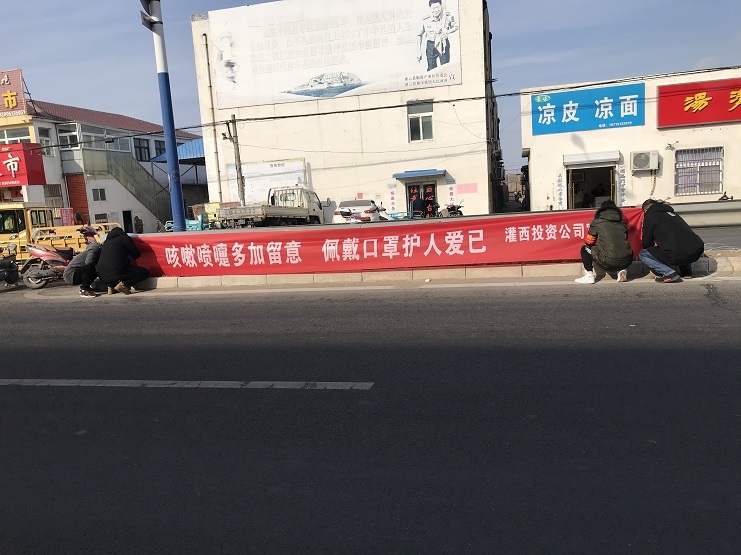 截止1月28日,通过悬挂横幅和张贴各类标语共1300余张,基本实现了灌西疫情防控宣传全覆盖。(苏北)