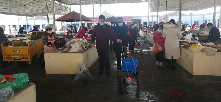 每日早上6点左右工作人员对市场进行全面消毒外,此外在客流量高峰时再进行2-3次的消毒,同时,对市场内的摊贩全部测量体温,并检查是否佩戴口罩经营。进入市场内的从业人员和消费者一律佩戴口罩,对未佩戴口罩的人员拒绝进入。