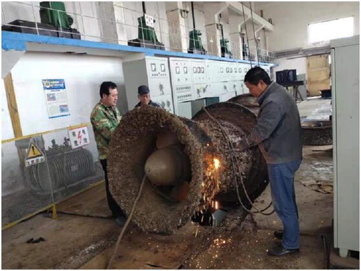 现在正值秋季海水养殖池塘产品起捕高峰,为了保证水源正常供应,六圩闸站机修人员利用小汛潮期间,加班加点抢修机泵,确保大汛来之前,机泵全面运行供水。(古青)