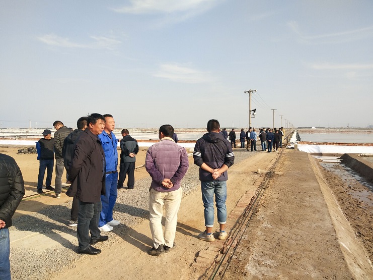 新河制盐分公司经理安树林带领大家参观七班滩场文明建设,在参观现场,经理安树林对新河参会班组提出要求:今年冬准工作各班组要抓头抓早抓实,严格冬准各项工作标准,按时间节点开展各项工作;塌陷的池堰进行重新修补整理,倒塌严重池堰把土工布揭开重新修整;对副廪基、咸沟道、下马格穷制卤,中高级卤水及时的进行回收存储;土塘清淤二节,做到周边淤泥踏平踏实,边口整齐上线,严格按照公司标准完成;做好卤水收储工作,全滩越冬卤水不得低于45000立方,穷制卤2000立方;对走过盐的廪基按标准完成,做到内外没有杂物,副廪基没有小盐面,廪基外围要有排水沟道。