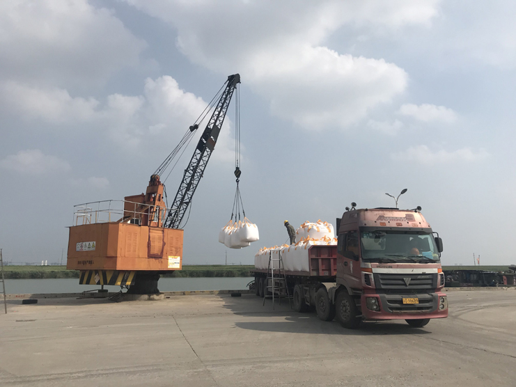 承载着管桩、吨袋、盘螺等货物的货车络绎不绝的涌入宵洋物流码头,整个码头也呈现出了一片繁忙景象。宵洋物流码头作为投资公司倾力打造的新兴产业,本着“以服务为本”的态度努力去做好物流工作。先后开拓了灌南钢铁厂、管桩等3家新客户,增加意向协议40万吨业务量。为了提高工作效率,宵洋码头全体员工以轮班制确保码头的365天的全天候运营,满足客户的需求。 (宵洋物流)