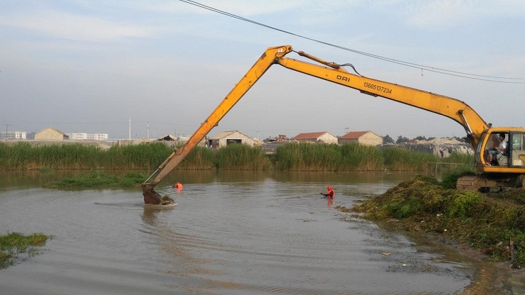 为不影响淡水鱼塘正常供水,机械服务公司急西旺公司所急,认真组织人力,对西旺东泵站机头草档进行更新及水草清理工作。一是及时到现场察看,制定制作、安装方案,二是组织技术人员进行加工制作,能放弃休息日,加班加点,从备料到制作,一天时间完成,三是人机结合,适时掌握天气预报,抢时间安装。从5月29日制作到安装结束,仅用2天时间。期间劳模王绪华能率先垂范,职工肖华胜等能不怕脏和累,穿好救生衣下水作业。安全指挥员刘洪波能做好现场指挥,确保了此工程安全、高效完工。体现了机械人的战斗力。为正常开机扬水提供了保证。(上图为安装、除草现场)