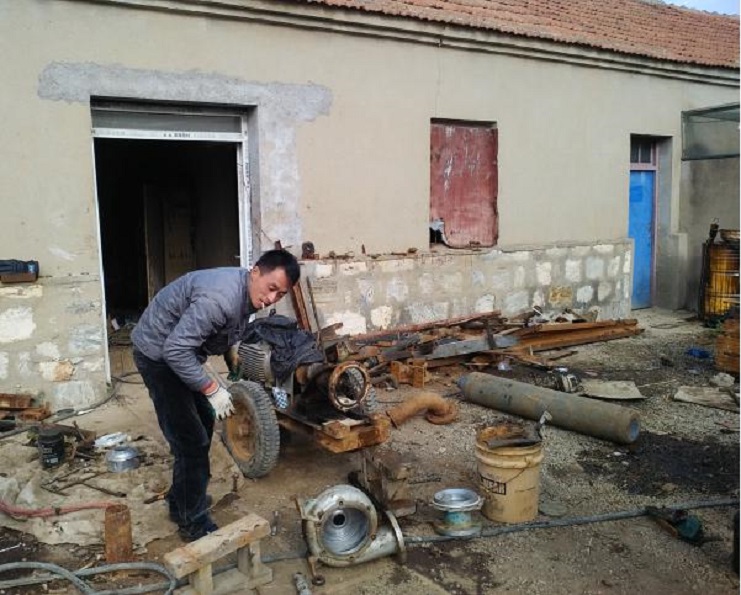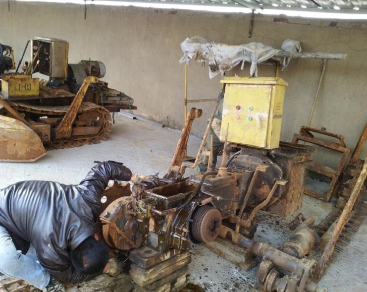 最近,日晒制盐新河分公司2016年下半年扒盐工作,接近尾声,各扒盐机组陆续完成扒盐任务,机械先后搬回分公司。该分公司机电组为了确保来年扒盐机械能够拿得出,打得响,积极对回来的机械进行维修、保养;目前,已完成2套机械的保养工作。(图为机电工人正在维修、保养扒盐机械)。