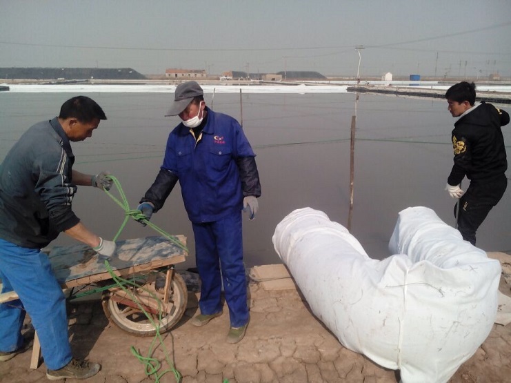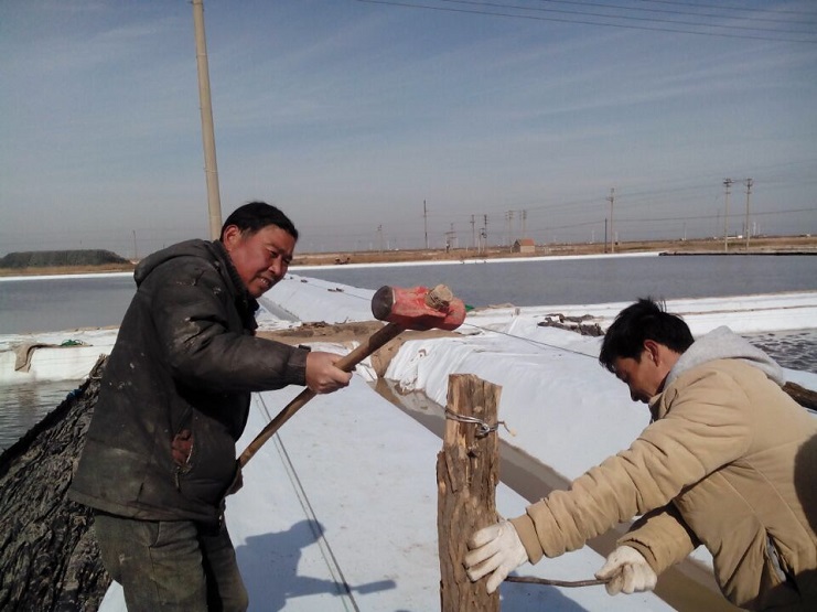 实业公司制盐分公司加快推进滩场文明建设。截止日前,分公司海盐基地二班已上齐土工布二千六百米,打桩一百八十四根,为今年制卤提供了有力保障。(实业公司)