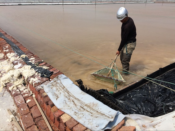近日,飘扬的柳絮给人们的生活和工作带来了诸多烦恼,给日晒制盐池盐生产带来了质量隐患,新河制盐组织各班抽调主干力量打捞落入滩池中的柳絮,保证柳絮不长入池盐从而影响盐质。(新河制盐 邱利民)
