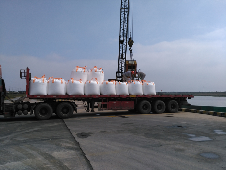 国庆长假期间,除了10月1日受天气影响外,宵洋物流公司码头装卸职工像往常一样,坚守在五灌河码头,随时做好吨袋物资的装卸工作,决不耽误客户的正常生产和产品运输业务,他们用无私奉献、敬业爱岗的实际行动,向党的十九大献礼,国庆期间码头共装卸吨袋近7600吨。(宵洋物流 范继龙)