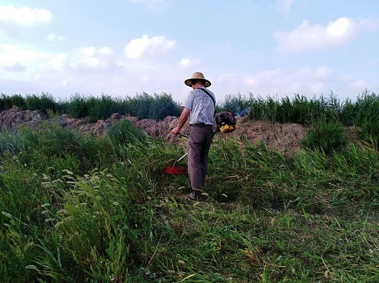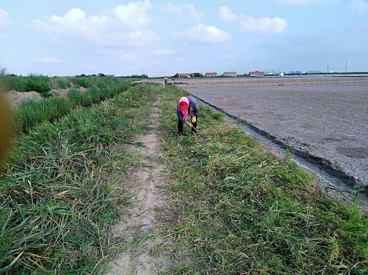 近日,实业公司海盐基地,柴门区三个班组加紧对滩场进行除草行动。夏日杂草丛生,严重影响滩容滩貌,且对滩格、沟道等造成制卤障碍,各班组长带领工人紧抓时间、人机结合除草。截止今日,三个班组共除草九千余米。(实业公司)