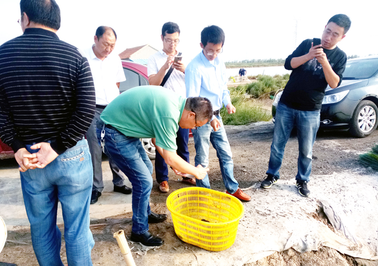 9月28日下午,在灌云县海洋渔业局朱局长陪同下,中科院海洋研究所张涛教授等专家一行来灌西投资公司海水养殖区域考察美国硬壳蛤(四不像)等养殖产品的养殖情况。 在承包户程恩军池塘处,张涛教授详细了解美国硬壳蛤的投放量、产量以及生长情况。提出能否把硬壳蛤生长期由二年缩短为一年,提高贝类单产效益;以及在贝类加工方面取得突破,共同把美国硬壳蛤产业做大、做强等建议,促进海水养殖的整体效益提升,从而带动灌西投资公司水产养殖业的良性发展。(养殖服务公司宣)