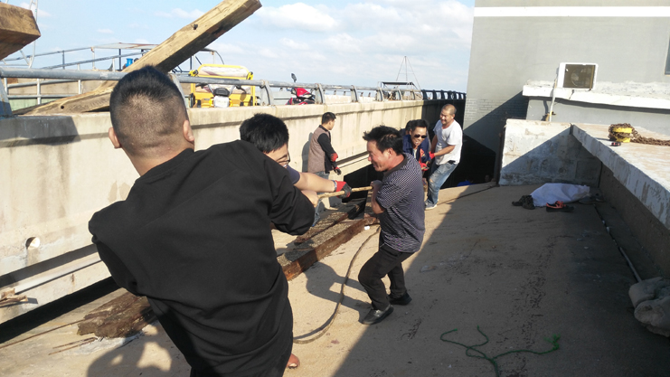 为确保机电设备运行正常,按时供好水,服务好海水养殖业。连日来,机电服务公司认真组织好修理人员,对六圩闸站机电设备进行修理维护。在市劳模、机修组长王绪华的带领下,所有参加人员不怕脏和累,赶潮水,对水泵、闸门、启闭机等进行维修作业。该组有6名修理人员,其中有3名是党员,1名党积子,他们能身先士卒,发挥了党员先锋作用,二星级员工程洪连能吃苦在前,脏了3套工作服,都没有心疼。经过近2周时间维护修理,共修理155KW水泵2台、启闭机1台,拆除木闸门、安装钢闸门各1块、更新草挡2片。为正常开机扬水提供了保障。(机电服务公司)