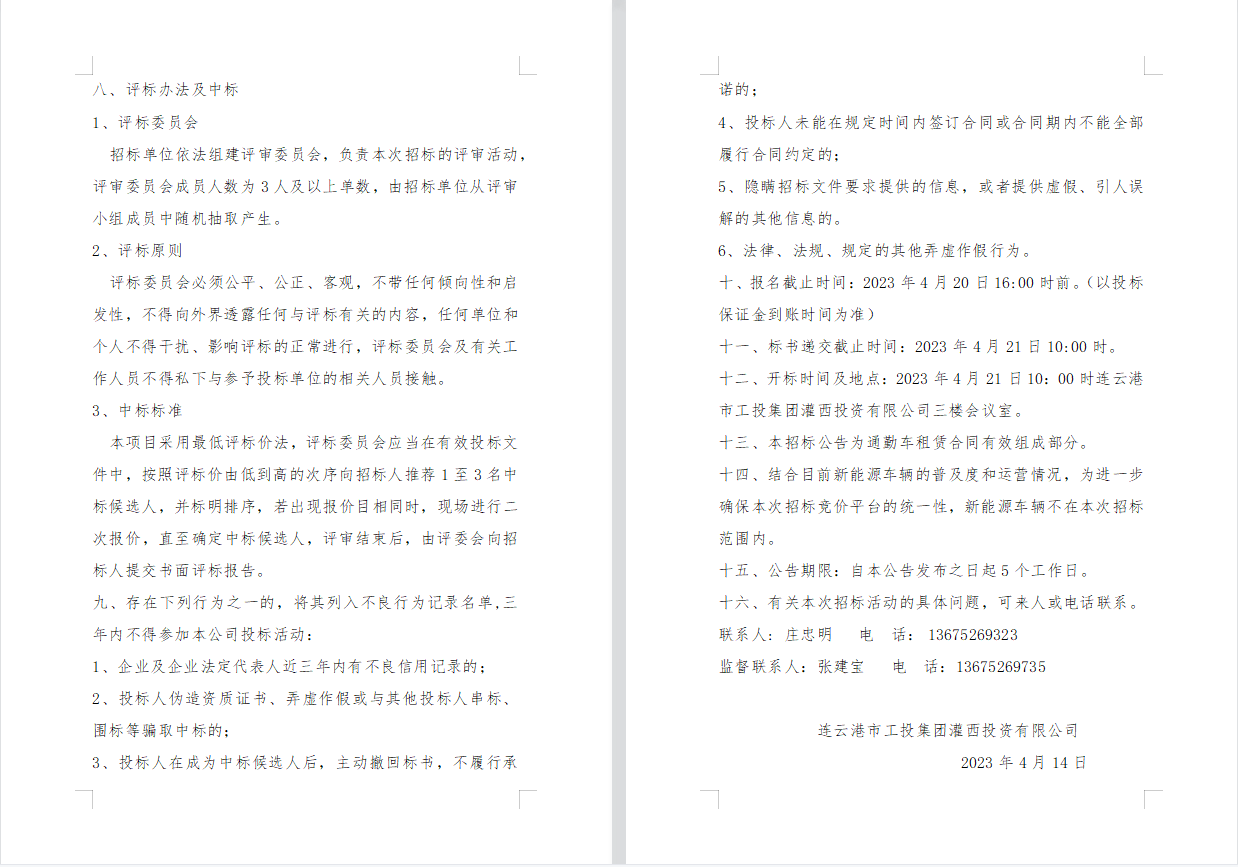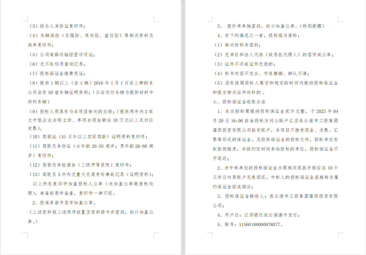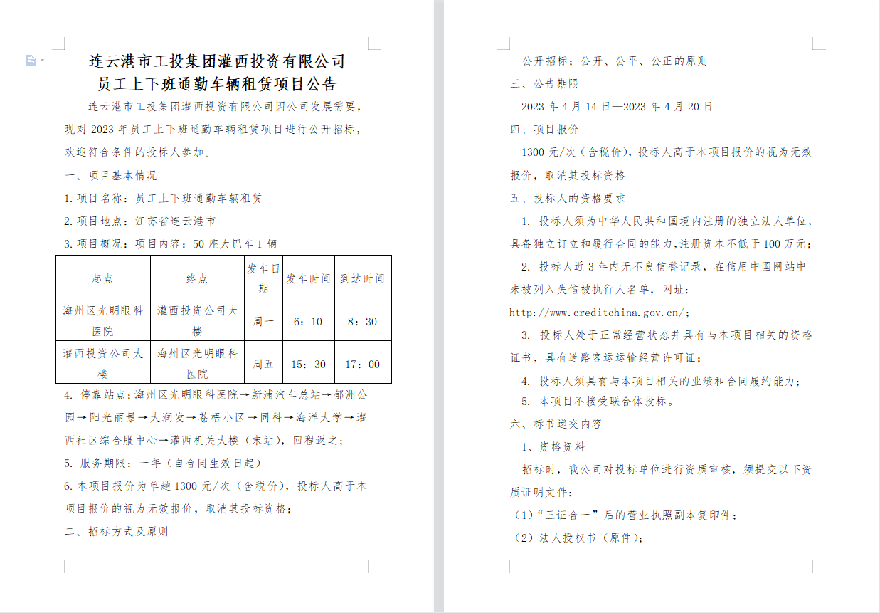 连云港市工投华体会(中国)灌西投资有限公司 员工上下班通勤车辆租赁项目公告